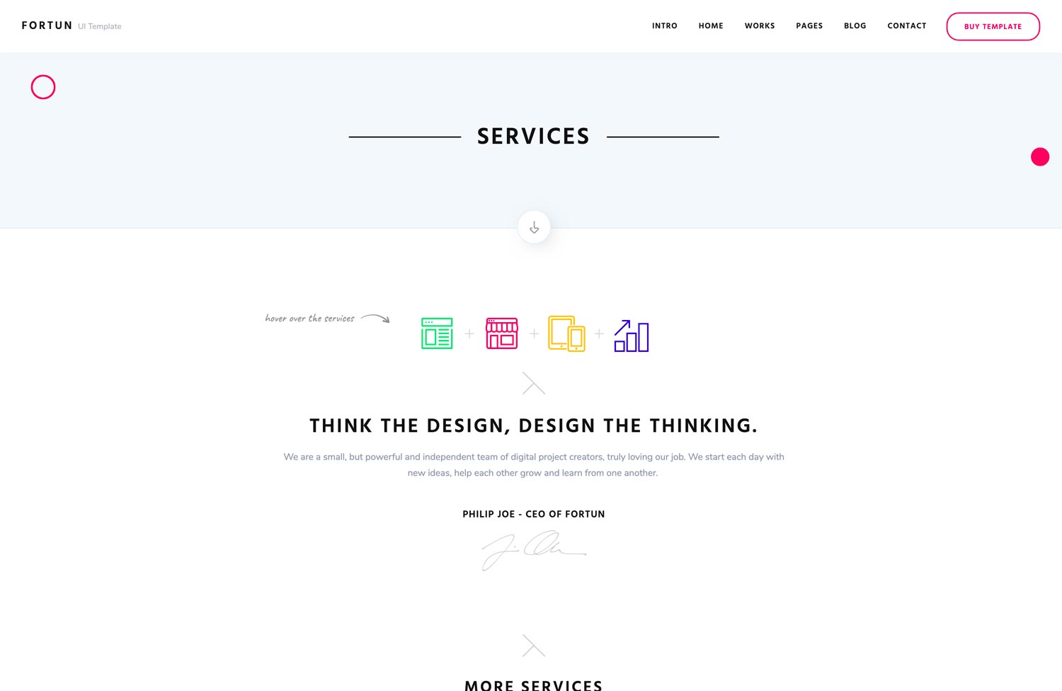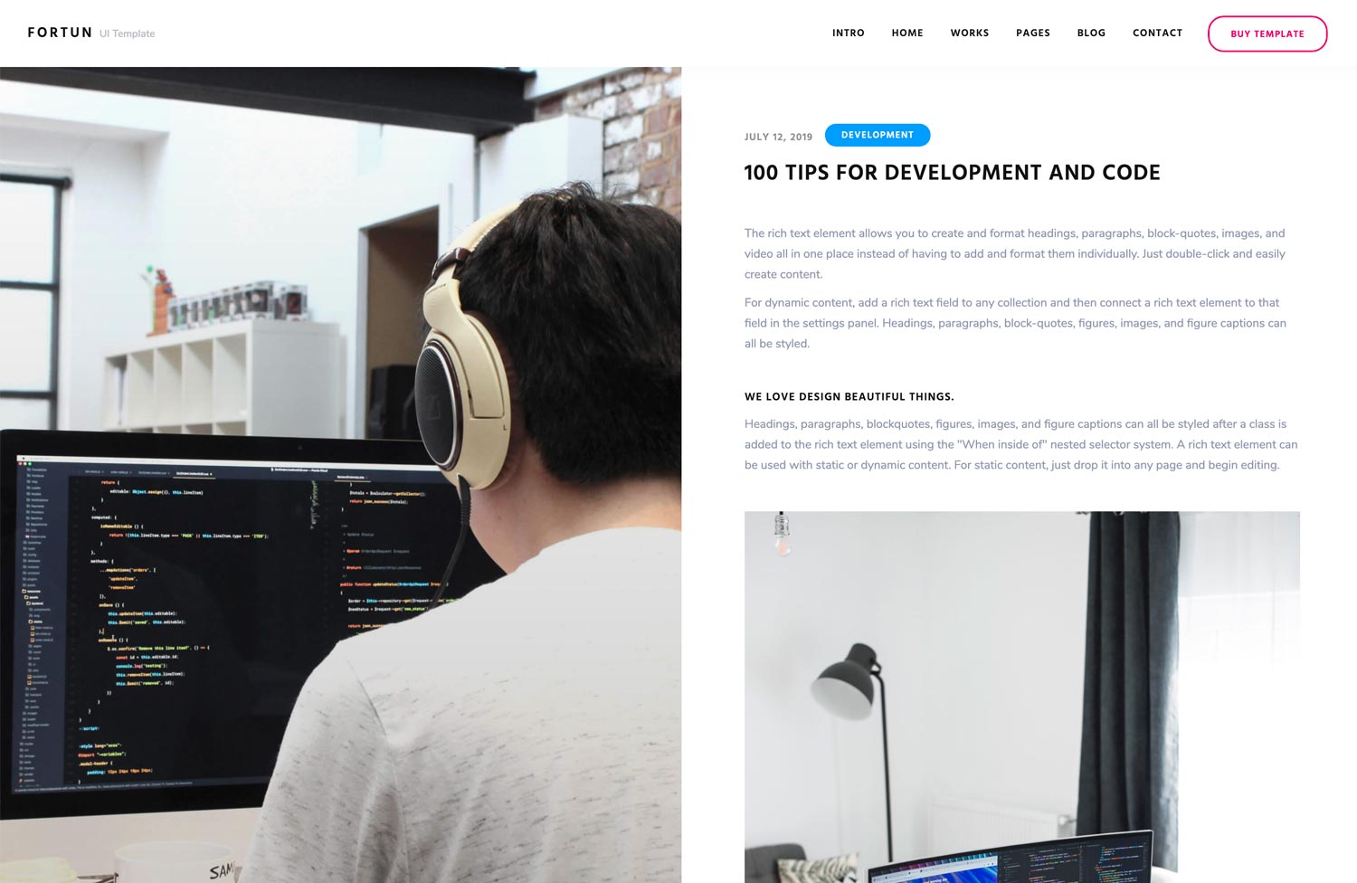 With a range of pre-design content blocks, Fortun provides you with an unlimited number of possibilities.
